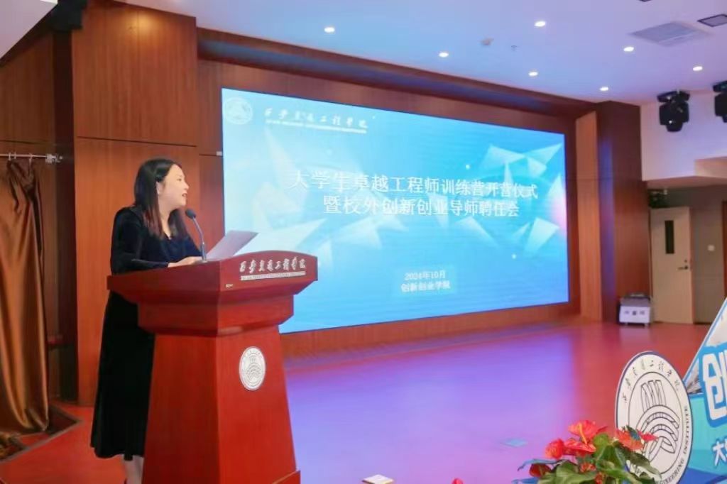 曹庆年宣布大学生卓越工程师训练营正式开营;吴伟为大学生卓越工程师训练营各分营授旗;潘春辉在致辞中指出,加强政校企合作,深化产教融合是培养卓越工程师的重要突破口,她充分肯定了卓越工程训练营校外导师引领科技创新的重要性,鼓励同学们通过卓越工程师训练营提升技能、磨练意志,培养综合素质,打造更多优秀的大学生科技创新作品。千红介绍了大学生卓越工程训练计划的基本情况。目前共有254个项目,所有小组都已积极开展项目成果建设,创新创业学院将全力支持大学生卓越工程训练计划的各项工作。