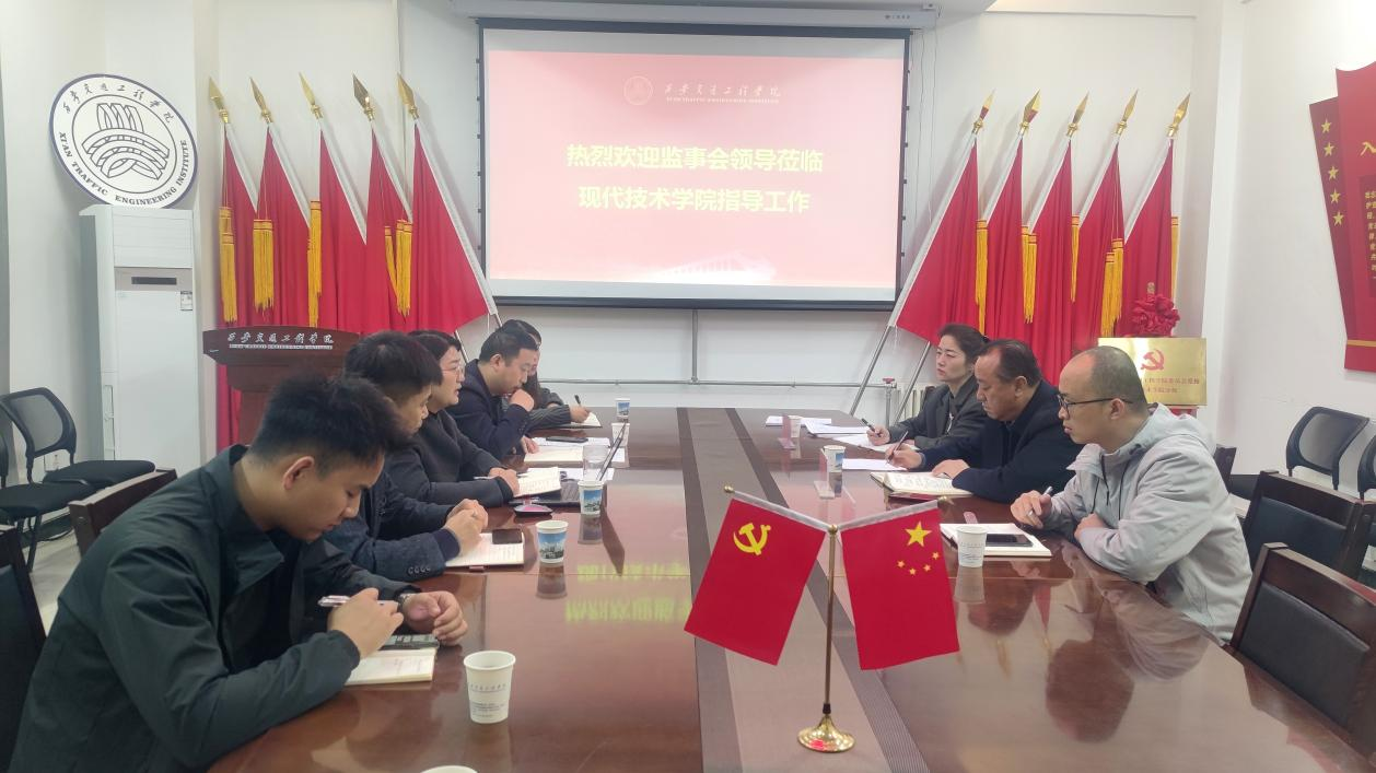 11月12日,学校监事会主席王勇、监事周飞、李艳一行深入现代技术学院实地调研,了解现代技术学院发展存在的问题和困难,关注学院师生的思想和工作状态,帮助解决实际困难、回应师生关切。学院领导班子、教学秘书、学工组长、团总支书记等参加调研会。