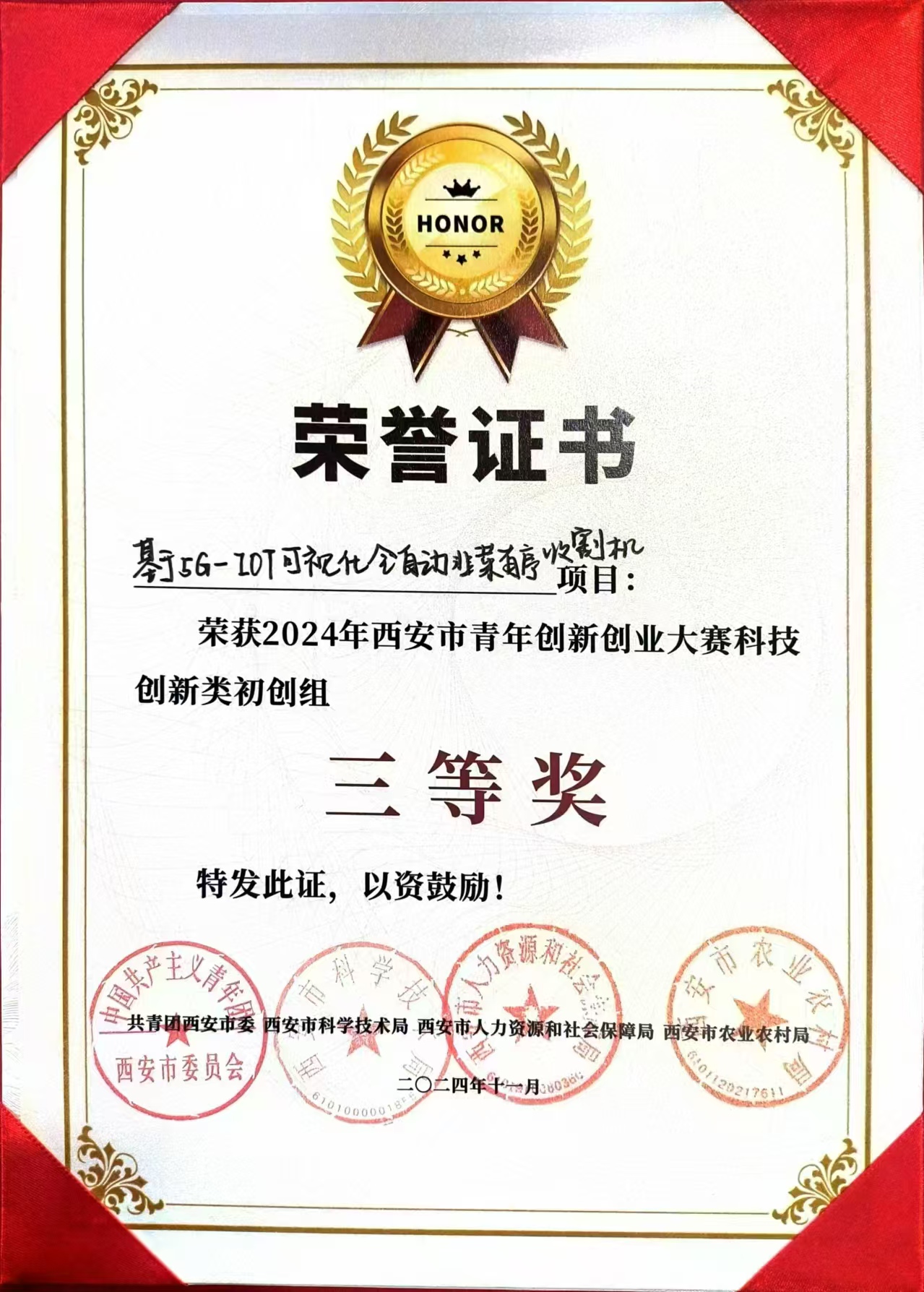 11月13日,2024年西安市青年创新创业大赛决赛在西安经开第五学校举行。此次大赛由共青团西安市委、西安市科学技术局、西安市人力资源和社会保障局、西安市农业农村局主办,西安经济技术开发区团工委和西安市经开第五学校承办,陕西省青年创业导师协会和西安青年企业家协会协办,共吸引了西安交通大学、西北工业大学、西安科技大学、西安石油大学及开云的7个项目进入科技创新初创组决赛。开云的唯一参赛项目——“数智赋农 翠动智收——在5G视域下新能源一体化韭菜收割机”成功入围,并在决赛中荣获三等奖。
