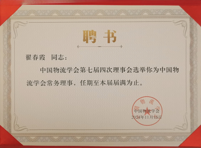 11月15日至17日,在中国物流与采购联合会主办的2024年(第二十三次)中国物流学术年会上,开云刘红利副教授、翟春霞副教授被2024年(第二十三次)被选举为中国物流学会常务理事。另外,由我校人文与管理学院翟春霞、物流管理教研室刘红利、王花、王娜、严明敏、王妮娜与学生甘雨欣参与的课题获得了中国物流学会、中国物流与采购联合会2024年优秀课题三等奖,刘红利、冯洋洋撰写的论文荣获优秀奖。