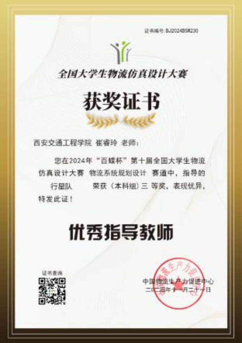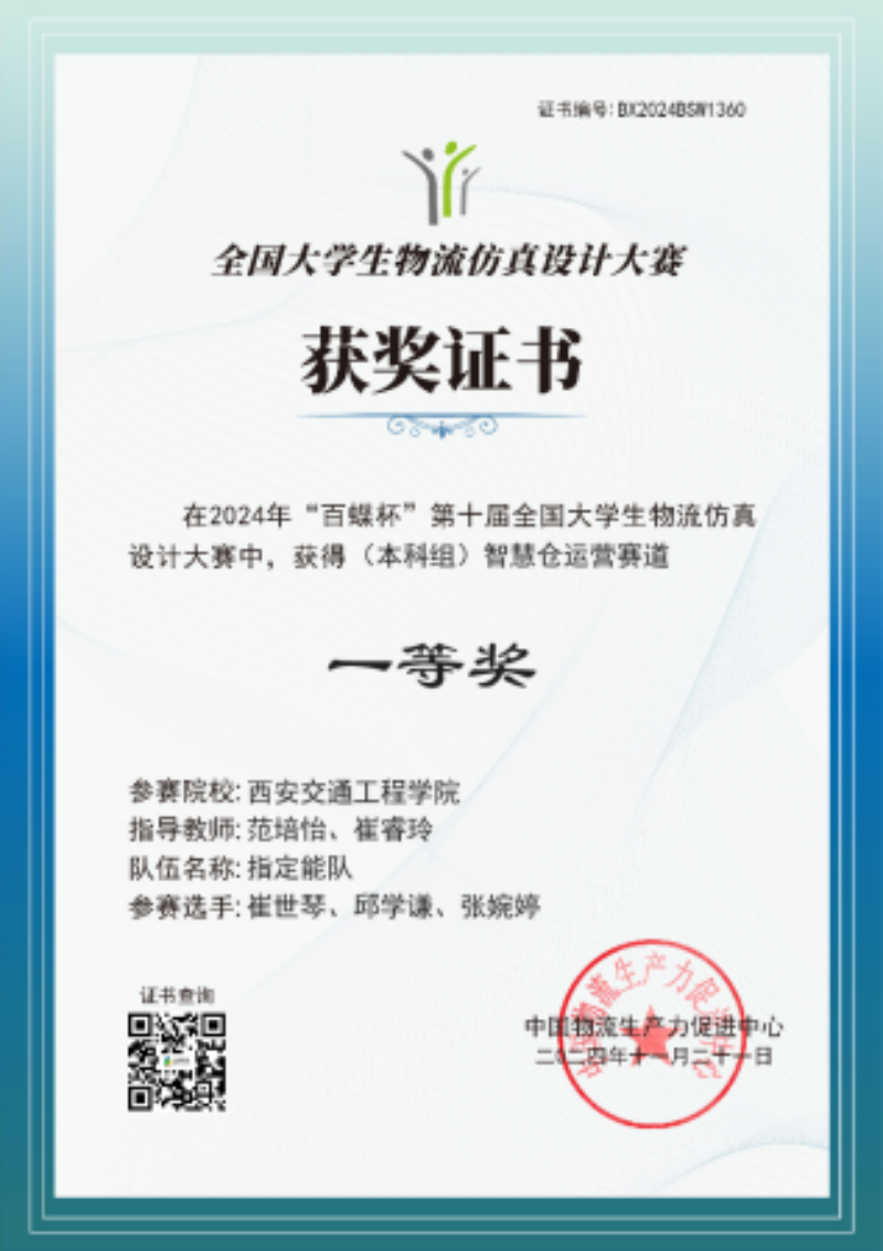 在开云教师悉心指导下,我校物流管理专业的学生团队在经过数月的精心准备和刻苦钻研,成功设计出了具有创新性和实用性的物流仿真方案。在比赛过程中,学生凭借扎实的专业知识、严谨的逻辑思维以及出色的现场表现,顺利通过了初赛和总决赛答辩,荣获一等奖、三等奖。