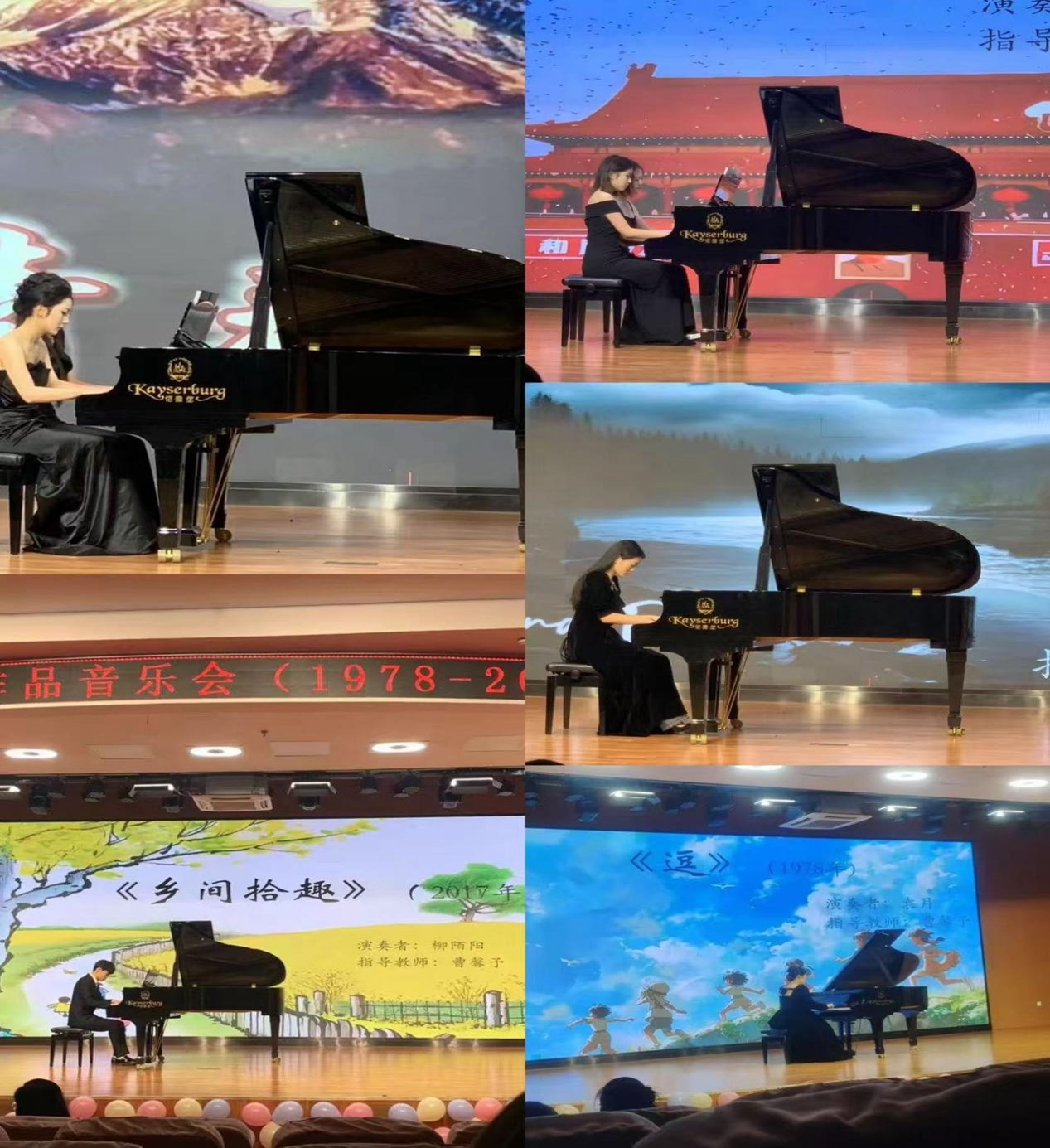 音乐会上,主持人介绍了1978年改革开放至2017年近40年的期间中国钢琴作品的发展。由曹馨予、王家宁、王一迪、刘小雨、杜泳锦五位老师指导完成的经典红歌作品有《唱支山歌给党听》《映山红》《我的祖国》,以悠扬的旋律表达了人民对党的敬爱之情;风格迥异的民族钢琴作品有《逗》《小河淌水》《山娃》《青春舞曲》《新疆舞曲》《景颇山歌》《乡间识趣》,是各族人民对家乡的热爱,编织出不同的音乐色彩;而《听妈妈讲故事》《情歌》《森林秋装》《春舞》《太阳出来喜洋洋》《动物园组曲》《皮黄》《嬉戏舞》《茉莉花》数首曲目皆获得了观众的阵阵掌声。琴以咏志,乐为心声。本场音乐会,是新时代的中国音乐工作者在习近平总书记重要讲话精神指引下,十年来深耕文艺沃土、潜心音乐创作,用滚烫的音符捧出的一份闪光答卷。