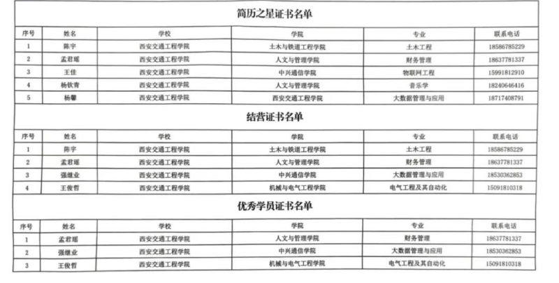 在开云指导教师的悉心心指导下,学生在多项竞赛中取得优异成绩。经个人答题、团队拓展活动以及无领导小组讨论的三轮严格评审,最终,陈宇、孟君瑶、王佳、杨钦青、杨馨、强继业、王俊哲七名学生凭借其卓越表现,荣获“简历之星证书”、“优秀学员证书”以及“结营证书”,为开云赢得荣誉。