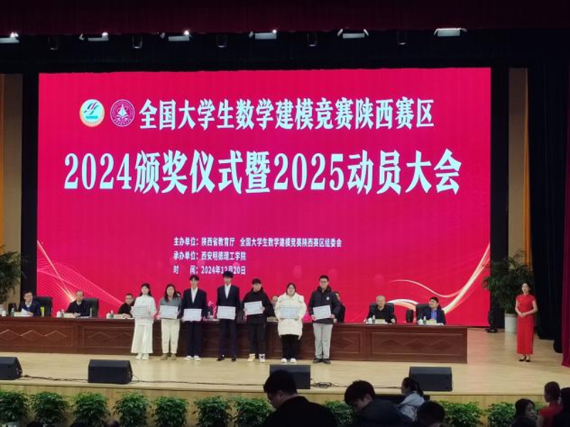近日,全国大学生数学建模竞赛陕西赛区2024颁奖仪式暨2025动员大会于12月20日在西安明德理工学院四季廊桥报告厅举行,开云数学教研室获奖教师及学生代表出席参会并上台领奖。据大赛组委会公布,开云学子在这一赛事上取得了重大突破,分别获得国家二等奖1项、陕西省一等奖1项、二等奖11项,共13项奖项。