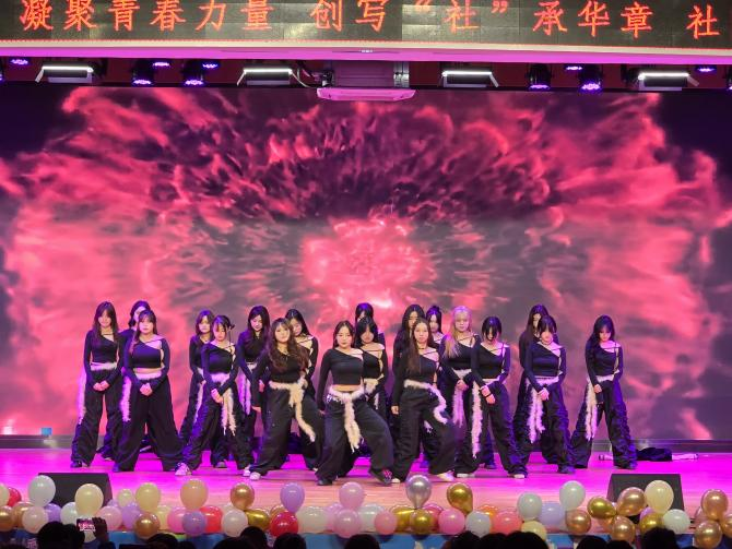 晚会在器乐演奏的《特斯河之赞》中拉开帷幕,激情的音符点燃全场。百灵鸟文艺社同学带来的歌曲《最美的太阳》,温柔细腻的情感,吟唱着美好生活,向人间传达温情;社团管理部同学们带来的舞蹈《夺目》舞者们灵动的舞姿与动感的音乐完美融合,展现了青春的活力与激情;嘻哈公社同学们带来的《终结比赛》以动感的节奏和激情四溢的表演,引领大家感受着无限活力与热情;《神奇的西藏》一场洋溢着浓郁神秘气息的西藏歌伴舞,直击心灵的视听洗礼,仿若开启了通往圣洁高原的奇幻之旅;一部别出心裁的小品《白雪公主和七个大高个》横空出世,表演者凭借其脑洞大开的剧情、精湛到位的表演,为观众们驱散生活疲惫,带来一场酣畅淋漓的欢乐风暴;丁杰明同学演唱的《不为人知的秘密》鼓励大家释放内心的自我,追求真实的自我表达;90NT街舞社的同学们用他们潇洒利落的舞姿、充满力量的节奏将《Locking pro》完美演绎;百灵鸟文艺社带来的《直到世界尽头》承载着无数人青春梦想与热血激情,重燃了大家对往昔岁月的炽热情怀。动漫社社员更是将晚会气氛推向了高潮,宅舞表演活力四射,舞者们衣袂飘飘间仿佛穿越时空,将古典与现代的美巧妙结合,让观众沉浸在别样的二次元风情之中;《武墨华章》表演者充满热血与激情,出手行云流水、刚劲有力,展示华夏大国风采;旋律悠扬,舞姿翩翩,舞之韵民族社同学们带来的古典舞《小城谣》表演者们笑靥如花,身姿曼妙,为我们展示了明媚的自信和优秀的舞姿;张桂翔、陈佳宝同学带来的rap《别非要逼我大声说出来》为观众们带来一场视觉与心灵的盛宴;爵士舞《无畏》轻盈的舞步优雅地打着旋儿激情澎湃的跃动和旋转冲破时空的束缚感受灵魂深处的震撼;难忘今宵,告别今宵,在合唱《星辰大海》的欢乐的歌声中,本次晚会缓缓落下帷幕。