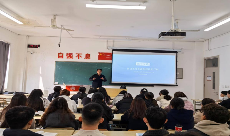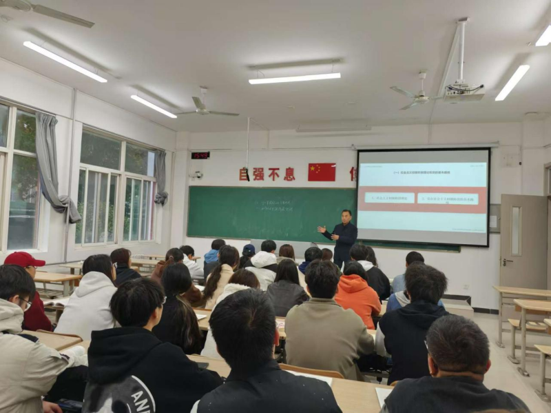 2024年11月21日上午,校长曹庆年深入教学一线,分别到1-101教室为学前教育24Z1班和4-306教室为交通运输24Z5班全体学生讲授了4学时主题为“社会主义革命和建设的开展”的思政课。课堂上,曹庆年以崇高的政治站位、严谨的治学思维,从马克思辩证唯物主义和历史唯物主义方法论视角出发,围绕中华人民共和国的成立和新生人民政权的巩固、社会主义道路的艰难探索和曲折发展、社会主义革命探索过程的经验总结三个方面,理论和实践相结合,紧跟历史主线,重点突出,教育和引导学生全面而准确地理解“历史和人民为什么选择了社会主义,开创了中国特色社会主义道路”。他殷切告诫学子,学习是一个漫长的过程,要多看好书,特别是哲学方面书籍,才能提升人的认知能力、思考能力、明辨是非和分析判断历史的能力。新时代大学生不仅要在学术上追求真理,更要在生活实践中,树立理想信念,善于学习科学知识、提升专业素养,用实际行动展现新时代青年的风采。