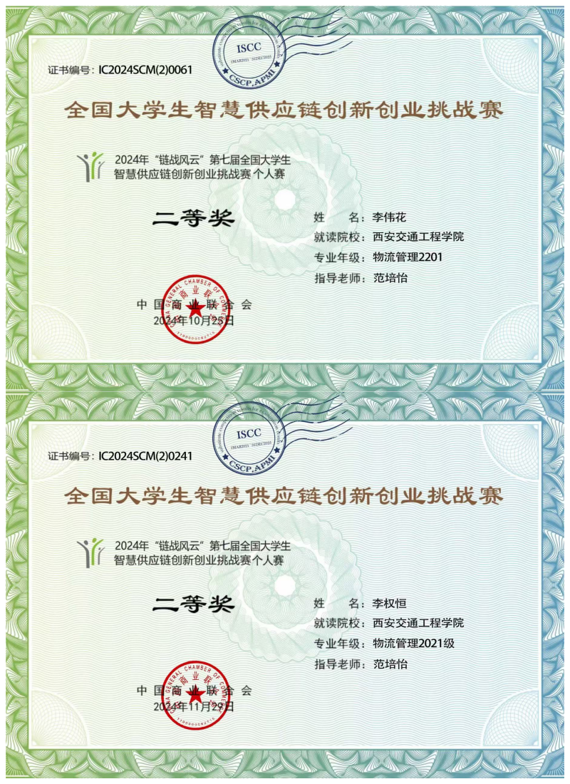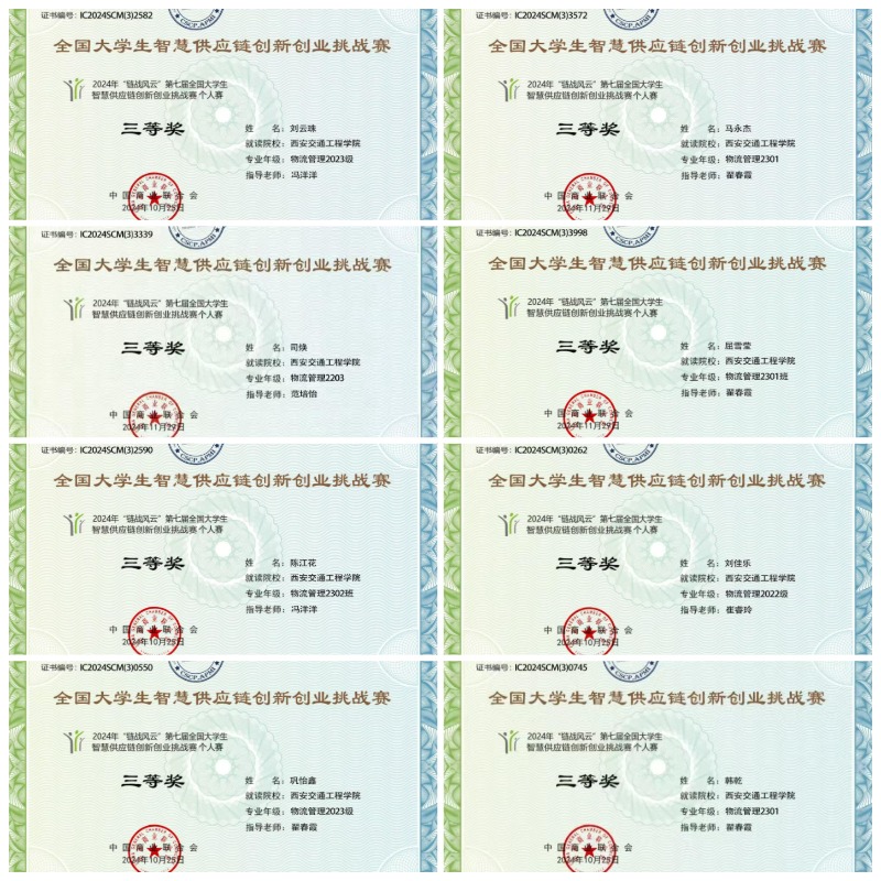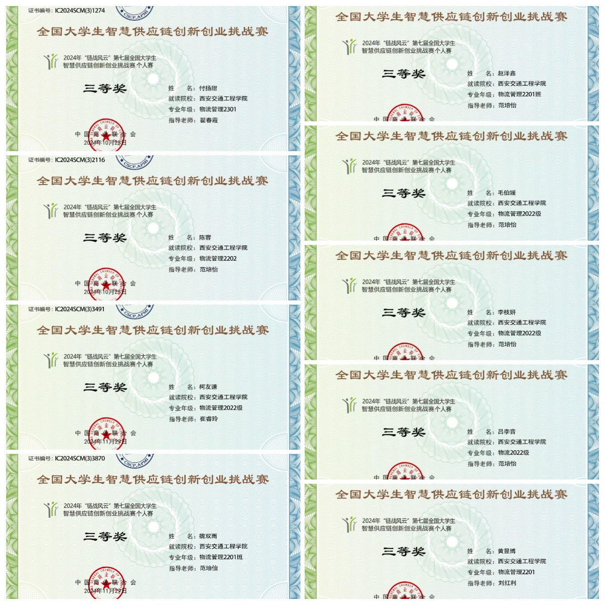 “链战风云”全国大学生智慧供应链创新创业挑战赛个人赛,作为国内供应链领域极具影响力的赛事,由中国商业联合会主办,得到了上海百蝶教育科技有限公司等单位的全程技术支持。本次比赛内容严格按照英国专业管理考试委员会(APMI)认证框架设计,竞赛题库选取国际注册供应链管理师(CSCP)官方考试题库,旨在培养具备管理智慧、运营能力和创新精神的高素质复合型物流管理人才,通过竞赛的形式夯实学生的专业知识基础,提升学生对物流行业创新理论的认知水平,为日后成为优秀的物流管理经理人奠定坚实的专业基础。物流管理教研室将继续秉持“以赛促学、以赛促教”的理念,积极组织学生参与各类专业竞赛,不断提升学生的专业素养和实践能力,努力培养更多专业精湛、素质过硬的应用型人才。