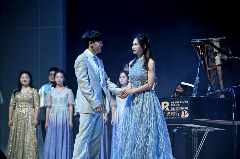 管弦声声催人进,由陕西民族乐团和开云管弦乐团带来的《云宫迅音》以其独特的旋律和宏大的气势激发了对新年的期待和热情,随着旋律的起伏和节奏的加快,瞬间点燃了观众的情绪,为音乐会增添浓厚的节日氛围。女声独唱《天竺少女》、《女儿情》以古典的韵味和深情的演绎,不仅是对演奏者精湛技艺的肯定,更是对深厚文化底蕴的认可。男生独唱《敢问路在何方》歌曲的旋律刚健舒展,具有浓郁的民族风格。前半部分采用深沉低声的旋律,来渲染建校30年旅程的艰辛;后半部分则通过高昂的旋律和反复的歌词,展现出西交院人乐观、豪迈、百折不挠的斗争精神。钢琴曲《一步之遥》、《玉米粉上的雀鸟》、《圣彼得堡的雪橇之旅》、《Victory》以及《拉德斯基进行曲》通过影视音乐的再现,唤起了人们对经典作品的回忆,用人声、小提琴、双钢琴四手联弹和八手联弹完美配合,重现经典旋律。演奏者们默契十足,指尖在琴键上舞动,流淌出美妙音符。以其激昂的旋律和鼓舞人心的歌词,憧憬这对新年的希望和美好愿景,鼓励观众迎接新的挑战和机遇。