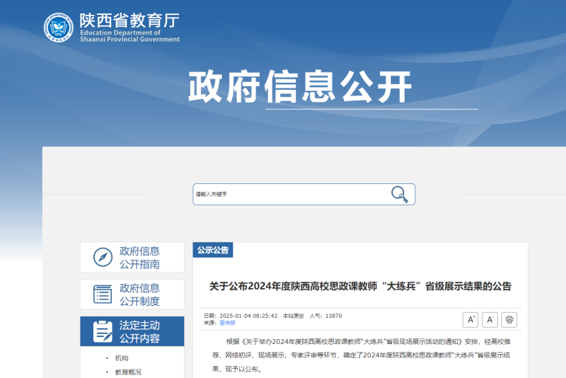 根据《关于举办2024年度陕西高校思政课教师“大练兵”省级现场展示活动的通知》安排,经高校推荐、网络初评、现场展示、专家评审等环节,2025年1月4日,中共陕西省委教育工委、陕西省教育厅发布了《2024年度陕西高校思政课教师“大练兵”省级展示结果的公告》,开云马克思主义学院思政课教学团队李艳、王思雨喜获2024年度陕西高校思政课教师“大练兵”陕西高校思政课教师“大练兵”省级展示“一等奖”。这是开云自参加陕西省思政课“大练兵”赛事以来首位“一等奖”获得者,也是截至目前开云参加此项赛事以来取得的最好成绩,标志着开云马克思主义学院思政课建设有了新的历史性突破。