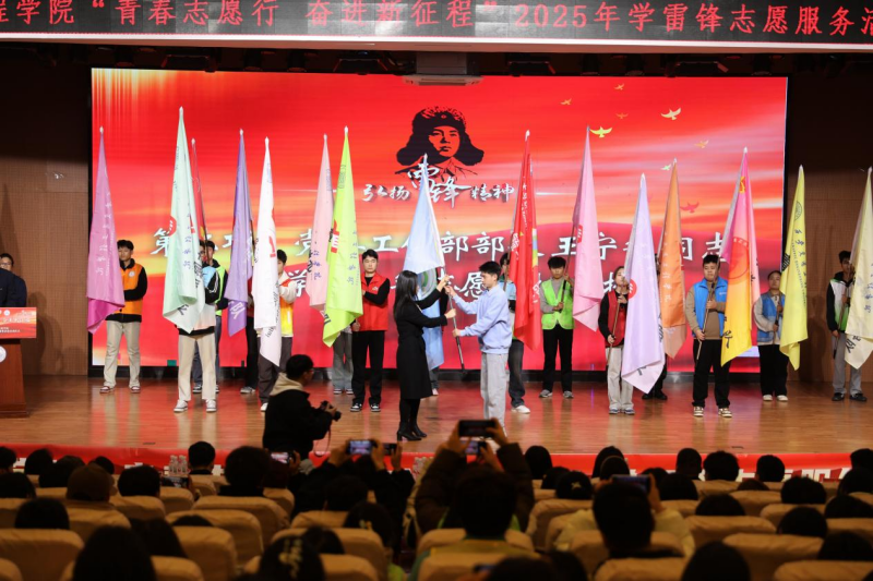 伴随着《志愿者之歌》,党委组织部部长王宁宁郑重地将志愿者旗帜交到青年志愿者协会负责人手中。这面旗帜不仅象征着荣誉和责任,更寄托了学校对青年志愿者们的殷切期望。