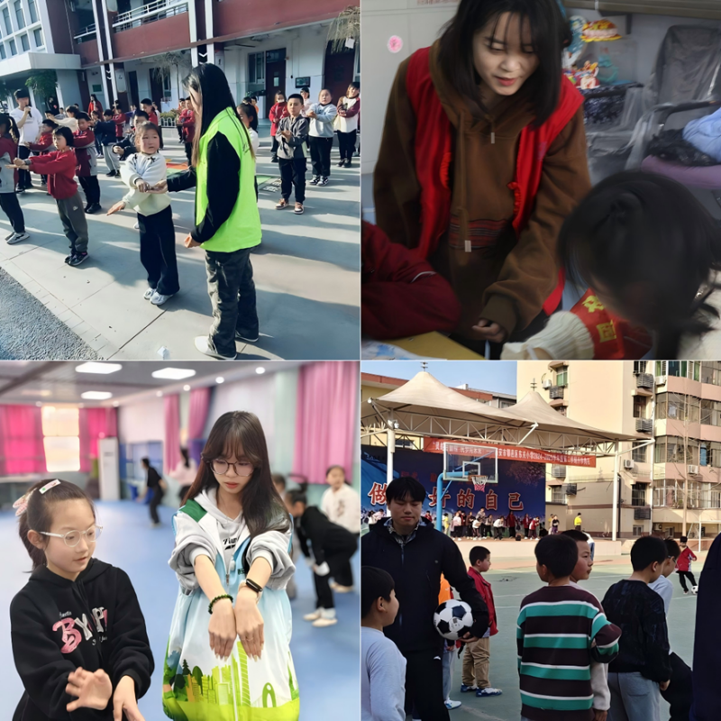 啦啦操组的志愿者们引导小学生们进行了充满活力的啦啦操表演,点燃了孩子们的运动激情。活动内容丰富多样,包括了啦啦操、航模、篮球、足球、舞蹈等多个项目。航模组的志愿者们通过展示和讲解,激发了孩子们对科技的好奇心;篮球和足球组的志愿者们组织了趣味比赛,让孩子们在运动中体验到团队协作的重要性;舞蹈组的志愿者们则通过舞蹈教学,提升了孩子们的艺术修养和表现能力。