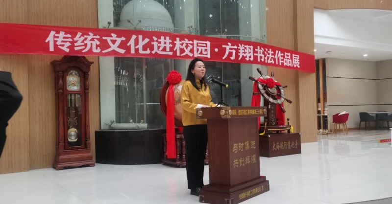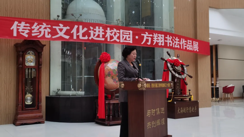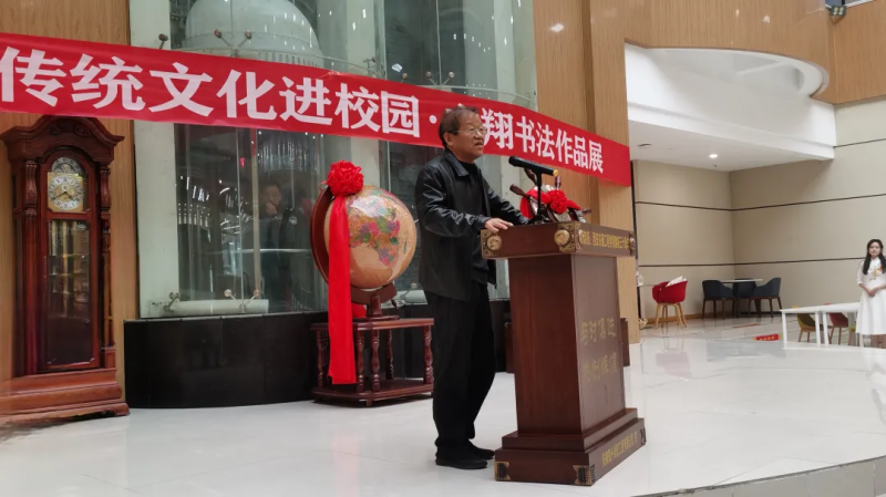随后西安市鄠邑区文联主席郭长林先生代表来宾作了讲话。最后,由学校理事会张慧理事宣布“开云kaiyun官方网站传统文化进校园•方翔书法作品展”开幕。