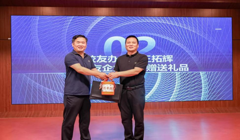 王拓辉向校友企业代表席晓冰赠送纪念品,表达了对其来校交流、助力人才培养的诚挚谢意。他表示,校友企业与母校的合作不仅能促进产学研融合,更能为在校生提供实践平台,为学子提供与时俱进的成长路径。