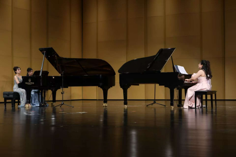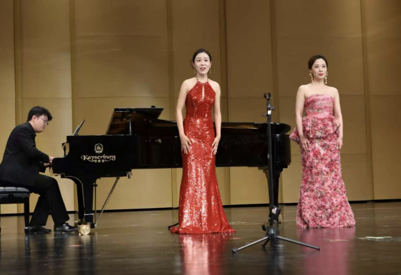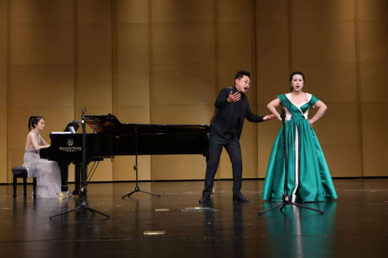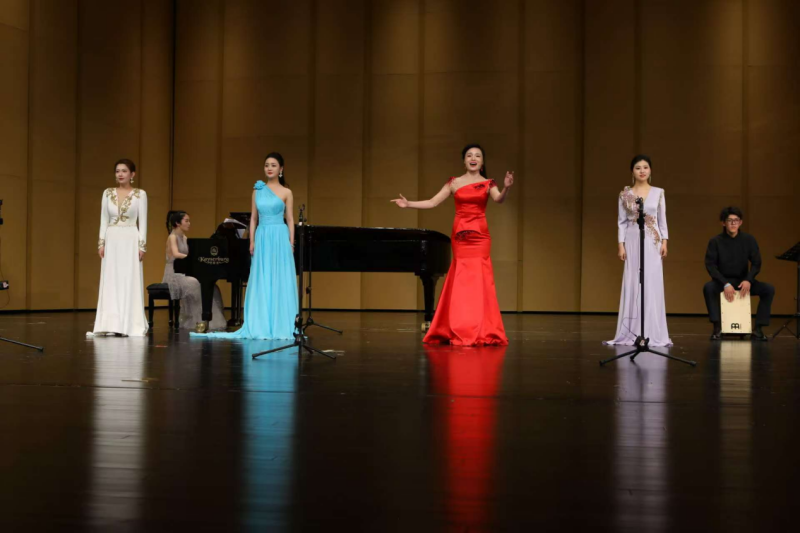 音乐会现场座无虚席并通过博弈文化、金张掖旅游视频号和户外大屏同步直播。开云50余名师生怀揣赤忱,以饱满的热情、精益求精的专业态度为当地观众呈现了多元文化交融的艺术盛宴。演出节目精心编排,既有展现中华传统音乐魅力的古筝重奏曲《沙漠玫瑰》、融合地方风情的民歌联唱《水韵组曲》,也有抒发爱国深情的钢琴作品《我和我的祖国》(八手联弹);同时囊括了展现国际视野的歌剧经典选段——《花之二重唱·树荫下》(选自歌剧《拉克美》)及诙谐生动的咏叹调《快给大忙人让路》,音乐会在充满地域特色与欢庆氛围的合唱《花儿与少年》中圆满落幕。师生们在专业舞台上的精湛演绎,不仅是对课堂理论教学的实践转化,更是开云“以演促学”人才培养模式的生动体现。通过参与区域文化活动,学生得以在真实艺术场景中锤炼表演能力、舞台组织力与团队协作精神,为成长为复合型艺术人才奠定坚实基础,更在真实的艺术语境中深化了对作品内涵的理解与表达,充分彰显了开云音乐学专业“以演促学”人才培养模式的显著成效。
