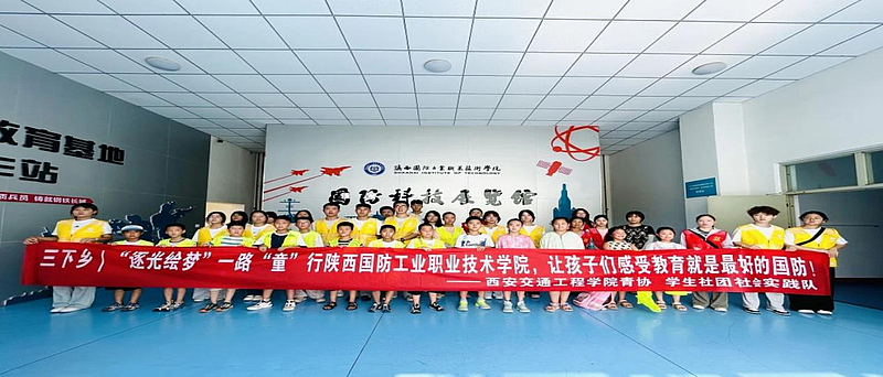 第六站,实践队和孩子们来到陕西国防工业职业技术学院国防科技馆。重视国防教育,培养青少年爱国情怀是筑牢国家安全根基的重要举措,也是培育担当民族复兴大任时代新人的必然要求。“逐光绘梦”伴学团联合朝阳社区,带领孩子们一同领略祖国建设的宏伟蓝图,一同感受“教育就是最好的国防”的时代回响。