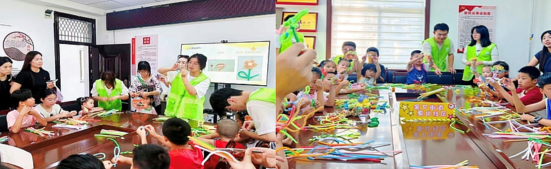 第四站,实践队来到惠北社区。在这里,队员们化身“社区小助手”,协助社区工作者开展信息登记、政策宣传等便民服务,与社区老人拉家常、听故事,了解他们的生活近况。结合社区儿童对艺术创作的兴趣,团队确定以“绘色”为核心,设计了数字画填色、石膏娃娃彩绘、彩色扭扭棒创意搭建、太空泥捏塑等丰富多样的活动形式,让孩子们在动手实践中感受色彩魅力,激发想象力与创造力针对社区老龄化突出、儿童课余活动相对匮乏的现状,实践队员们精心策划了以“彩色”为主题的系列趣味活动,为社区注入青春活力,收获广泛好评。