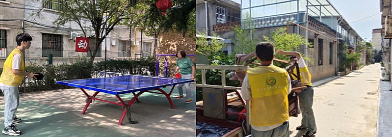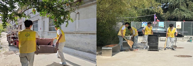 第七站,实践队走进朝阳社区,开展了一系列社会实践活动。实践队员重点引导老人树立分类意识,讲解纸壳、塑料瓶等可回收物的分类标准,协助老人进行闲置物品筛选,并将可利用的废旧材料改造成实用小物件,实现“变废为宝”。