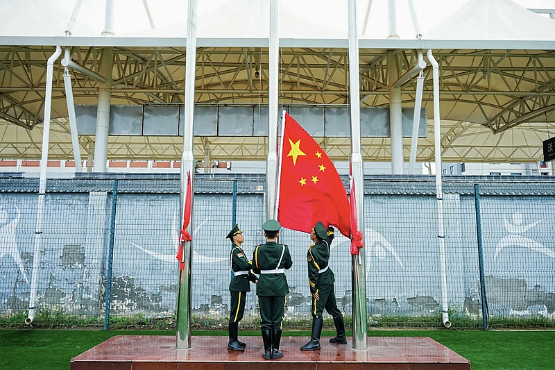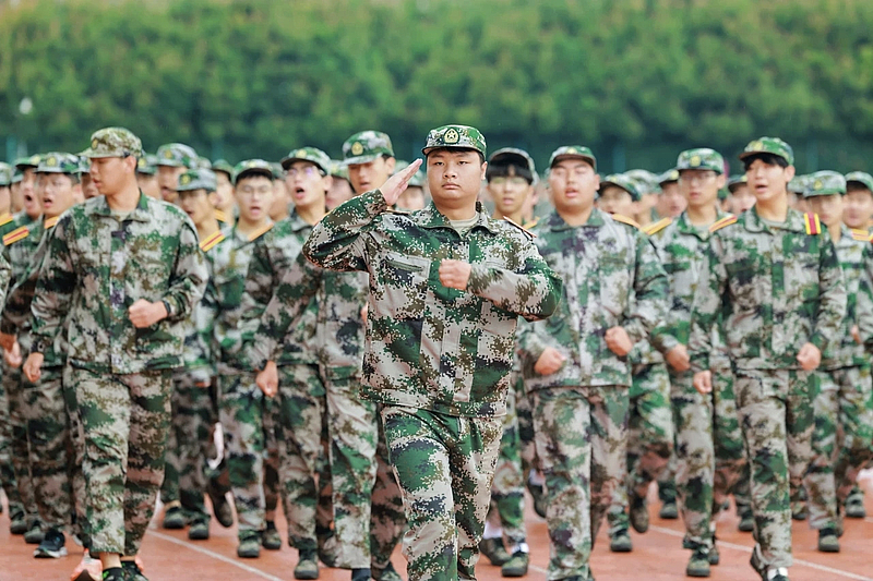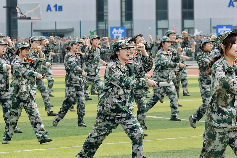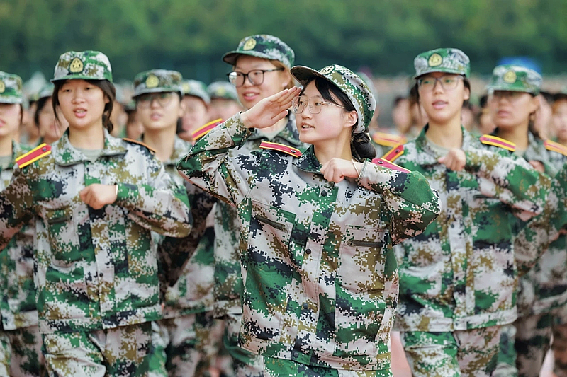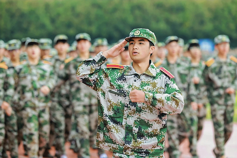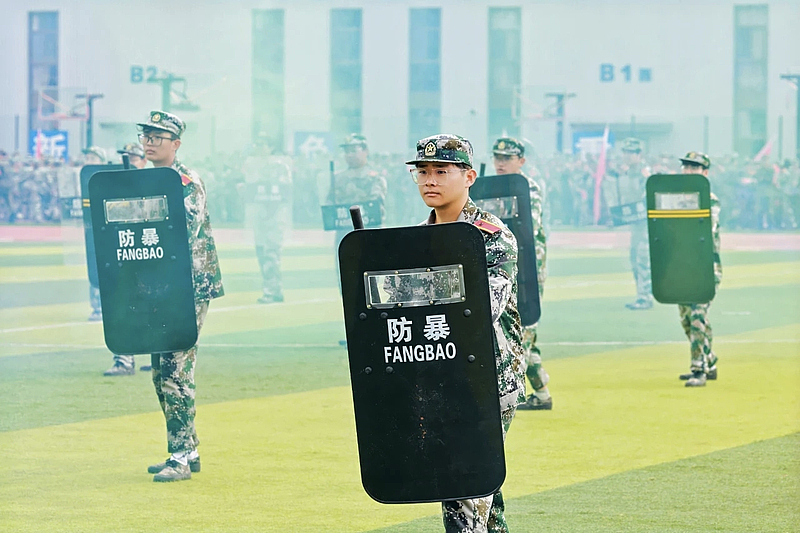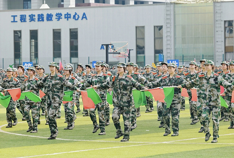 上午九时许,庄严的国歌声中,典礼正式拉开帷幕。同学们目光坚定、步伐铿锵、口号响亮,以饱满的精神和整齐的队列依次经过主席台,接受检阅。分列式上,军体拳方队、棍术方队、花样方队、女子匕首操方队等训练项目熟练有力,用高昂的斗志和振奋人心的口号,全面展示了十四天军训的丰硕成果,彰显出2025级新生昂扬的精神面貌和顽强的意志品质。