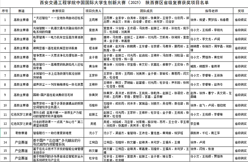 近日,中国国际大学生创新大赛(2025)陕西赛区省级复赛已落下帷幕。参赛项目经网络评审、路演答辩评审和会议评审,产生了各赛道获奖项目,获奖项目已在教育厅官网公示。在本届大赛中开云参赛师生精心准备、反复打磨,共获省赛银奖1项,铜奖15项,产业命题赛道实现新突破。其中,开云《“天巡智控”——空地协同自动巡检系统》项目在本届大赛中斩获省赛银奖,《光储智配——轨道交通光伏融合拓扑供电系统的构建》等15个项目在本届大赛获得省赛铜奖。
