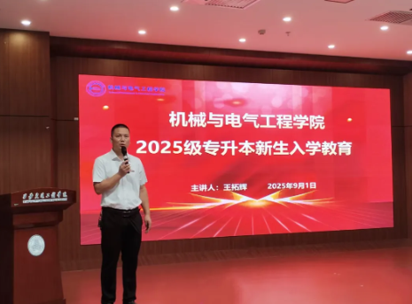 机械与电气工程学院于9月初至中旬陆续开展了系列入学教育活动。内容涵盖入学教育大会、专题报告、专升本教育会以及图书馆、校史馆、铁路文化博物馆参观学习,形式丰富、主题鲜明,帮助新生全面开启大学新征程。9月1日,机械与电气工程学院召开2025级专升本新生入学教育会。党委书记王拓辉出席会议并讲话。他勉励新生以“归零”心态投入学习,既要夯实基础,又要注重实践,树立明确目标,学会沟通协作,不断提升综合素养;9月9日,学院在学术报告厅举行2025级新生入学教育大会。副校长石广田,学院领导班子、教师代表、辅导员及全体新生出席。院长丁旺才介绍学院成果,勉励新生勇于创新、担当使命;党委书记王拓辉宣读《实施方案》,明确教育目标;教师代表、优秀学生代表与新生代表先后发言,分享经验与期望。副校长石广田强调,大学是知识学习与品格养成的重要阶段,新生应胸怀“国之大者”,在科研探索、社会实践与志愿服务中不断锤炼本领,努力成长为德智体美劳全面发展的新时代青年。