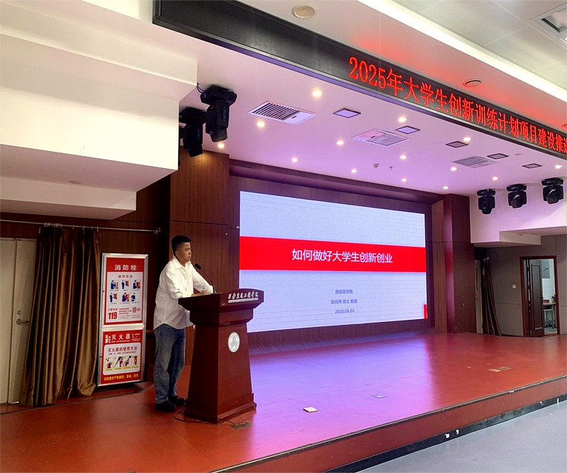 为促进本年度大学生创新训练计划项目按时保质完成,2025年9月24日,创新创业学院在集贤楼报告厅召开2025年度大学生创新训练计划项目建设推进会。活动特邀西安医学院张光伟教授进行深度分享。创新创业学院卢润老师、财务处马安霓老师及2025年度大学生创新创业训练计划项目指导教师和学生代表参加会议。