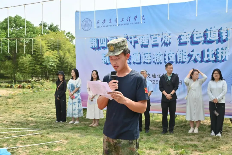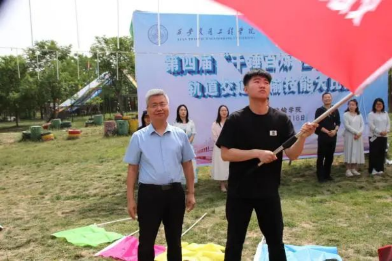 活动伊始,交通运输学院党委书记兼副院长钱穆萨致辞,强调活动对践行“道钉精神”的重要意义,鼓励学生在实践中锤炼过硬本领。学生代表刘阳发言表示:”我们将以饱满的热情、昂扬的斗志,全身心地投入到比赛中。无论最终的结果如何,只要我们全力以赴,充分展现出自己的实力和风采。”接着教官代表发言讲话,他提到“本次素质拓展活动既是对专业知识的活化运用,也是对团队协作、沟通协调、问题解决等能力的立体检验。”随后,崔炳谋院长宣布第四届“千锤百炼 金色道钉”轨道交通运输技能大比拼正式启动,并授旗,标志着比拼正式拉开帷幕。