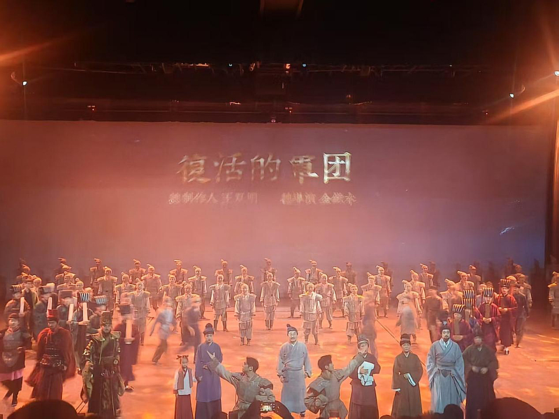沉浸式观演,激发使命担当。最后,师生们集体观看了大型沉浸式史诗剧《复活的军团》。该剧以秦统一六国为背景,通过震撼的舞台艺术和沉浸式体验,再现了古代将士保家卫国的壮烈情怀。剧中“岂曰无衣,与子同袍”的铿锵誓言,让许多同学热泪盈眶。
