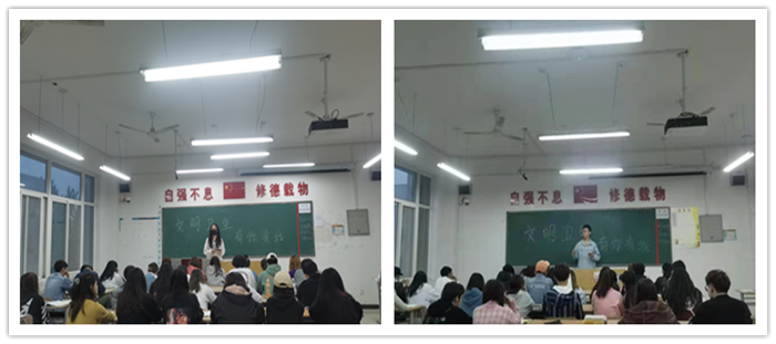 ——文明宣讲团进教室。为夯实文明礼仪宣讲基础,校园文明宣讲团进教室对学生进行文明礼仪的学习宣讲。文明宣传员号召学生遵守校纪校规和大学生行为准则,严格以《开云kaiyun官方网站学生手册》规范自己的言行,严禁上课迟到、早退、旷课,上课玩手机、打游戏等不遵守课堂纪律的现象发生。同学们要自觉维护教室卫生,酿造积极向上的教室学习氛围。