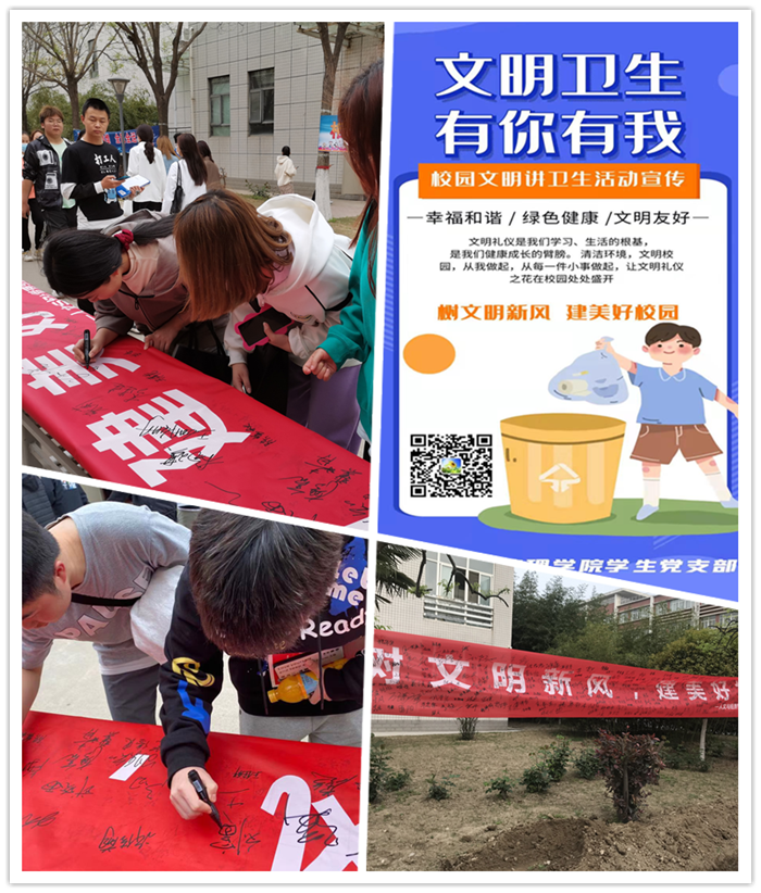 ——文明宣讲团在校园奔走宣讲文明礼仪。我们的文明宣讲团的成员有学生党员、优秀团干、入党积极分子、班级骨干等,他们紧紧围绕着学院倡导的文明礼仪,结合经验积累和相关知识,从校园文化、思想道德、管理制度等方面,做互动、引共鸣,在校园里立体式、多维度引导开云学生学习文明礼仪,遵守日常行为规范,创设良好校园环境。此外,校园宣讲团引导师生在宣传横幅上签字,共同维护校园文明环境。