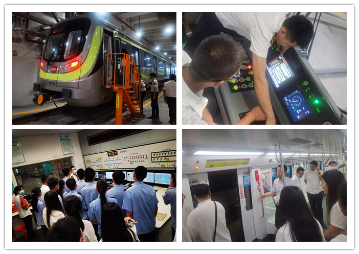 活动中,培训组工作人员向同学们讲解了地铁相关专业知识及常见的应急处置并带领大家进入和平车辆段运用库司机室分批进行司机室设备的操作,学习了解车辆屏、信号屏显示意义等,同学们学习热情高涨。培训组工作人员与学生乘坐地铁到达四号线含元殿站,由含元殿车站工作人员向学生们讲解了地铁运营理念,科普日常车站设备的组成和操作(TVM、AGM、IBP盘、FAS立柜、消火栓、各设备室),应急情况下地铁的运营组织方案。