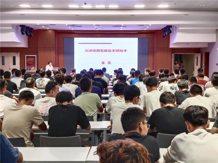 金花凭借自己多年从事机械系统动力学及控制研究的经验和丰富阅历从新时代交通强国铁路先行规划纲要出发,以我国高速铁路发展现阶段取得的重大突破及重大工程建设为核心,向同学们介绍了我国高速铁路的发展现状和远期发展目标。针对高速铁路的动车组成、车体、转向架、制动系统、牵引变压器、主变流器、牵引电机、牵引传动控制系统、列车控制网络系统等关键技术,她结合多个具体生动案例进行详细介绍,同时对未来从事铁路工作的同学们提出要求,希望同学们扩大知识面,提升专业技能,注意学习理论与社会实际需求相结合,注重专业技能的培养。