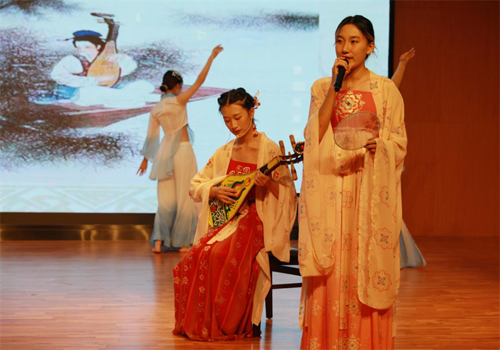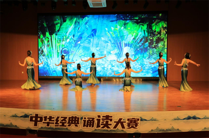 中文教研室黄英、赵嘉欣、高玲、安丹丹,教务处李妍担任大赛评委。大赛在交通运输学院同学们衣袂飘飘的古典舞《唐印》中拉开帷幕,同学们个个精神焕发、饱含激情诵读了《将进酒》、《琵琶行》、《长恨歌》、《声声慢》、《出师表》、《木兰辞》等经典国学篇目,参赛选手酣畅淋漓的抒发了自己的家国情怀,精彩的表演赢得经久不息的掌声和喝彩,让现场的评委与观众为之惊叹,大学艺术团姑娘们带来的傣族舞《竹林晨雨》给现场观众带来艺术美的享受。大赛在国风歌伴舞《不染》中圆满结束,呈现了一台当代大学生展示国学经典文化的视听盛宴。