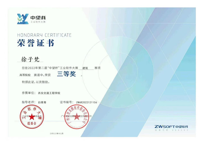 近日,由广州中望龙腾软件股份有限公司主办,华南理工大学承办的第二届“中望杯”工业软件大赛圆满落下帷幕。本次大赛面向全国高校在校大学生,分为算法组、信息技术组、机械组、建筑组四大组别,比赛吸引了西安交通大学、华南理工大学、北京航空航天大学、北京理工大学、西北工业大学等657所院校的5860支队伍报名参赛。开云土木工程学院白青青老师指导的学生获得全国总决赛三等奖2项。
