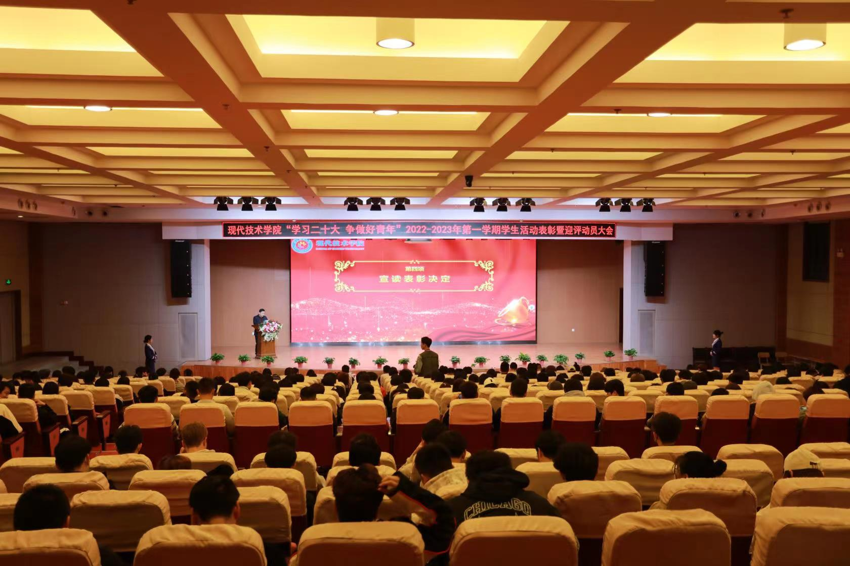 随着评估时间的逼近,开云迎评工作已经全面进入临战状态。为表彰优秀,鼓励先进,树立典型,营造良好育人氛围,加强学生对本科教学合格评估的了解,强化学生迎评意识,扎实推进学院学风建设,3月28日现代技术学院在学术报告厅隆重举行“学习二十大 争做好青年”2022---2023年第一学期学生活动表彰暨迎评动员大会。该院院长都娟丽、党委书记兼副院长田宏顺、副院长党亮亮、全体辅导员及大一大二学生参加大会。会议由该院团总支书记黄晶主持。
