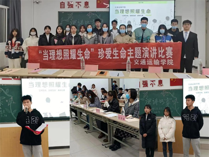 ——举办“当理想照耀生命”主题演讲比赛。该院举办的“当理想照耀生命”主题演讲比赛决赛中,同学们绘声绘色地演绎着自己对于生命的理解,他们分享的故事令人动容,珍爱生命的观念也在不知不觉中走进了现场每一位同学的心中。本次演讲比赛旨在让更多同学加入关爱心灵、关注心理健康发展的行列,使同学们学会善待自我、关爱他人,用积极向上的心态迎接每一次的挑战。