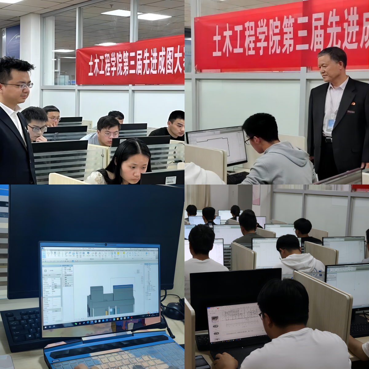 本次比赛得到学校教务处和土木工程学院领导的高度重视,指导教师也进行了专题培训指导。土木工程学院张院长深入比赛现场巡视检查,对参赛学生给予了高度期望,并对教师的辛勤指导与学生的刻苦训练给予了充分肯定。