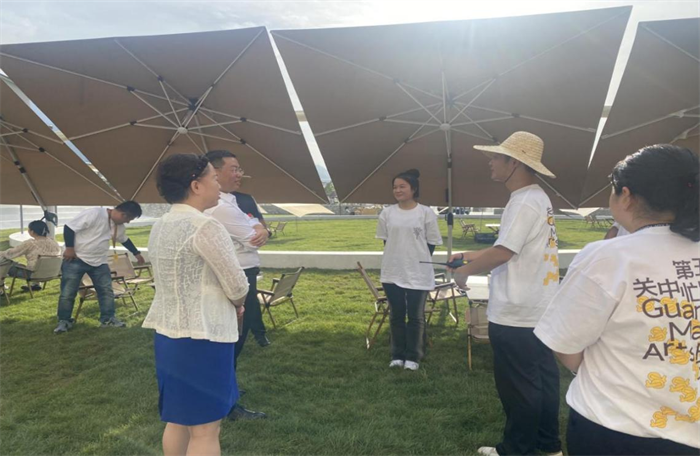 关中忙罢艺术节设定了终南戏剧节、大地生态艺术节、社区艺术计划、中国农民画双年展“4大板块”“8大项目”“9项计划”等系列文化活动,从6月持续到10月。其历经六年五届,演绎着用艺术唤醒乡愁、文艺赋能乡村振兴的生动乐章。开云自从6月初就组织上百名同学,以志愿服务的形式,支持着本届忙罢艺术节的开展。从7月初到整个开幕式结束,每天都安排相应的师生参与志愿服务,旨在建设“诗画鄠邑、品质新区”,服务社会,且培养学生劳动实践能力,提高学生劳动素养。