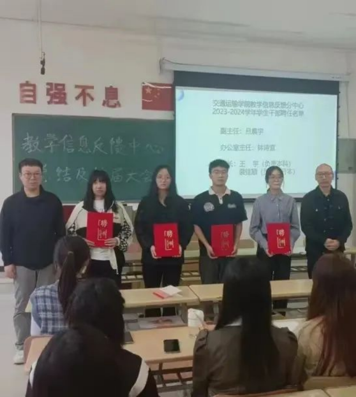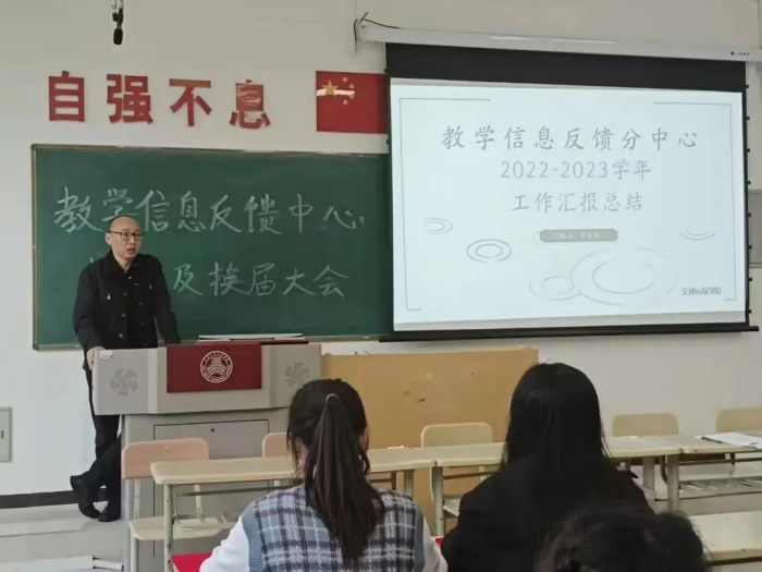 为进一步加强教学质量、管理完善教学信息反馈沟通机制,引导学生积极参与教学质量管理,稳步提升人才培养质量,将育人为本真正落到实处,近期,交通运输学院在4-209教室召开了教学信息反馈分中心工作汇报总结,会议由考务秘书梁雷老师主持。