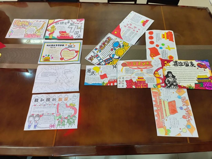 ——开展中秋、国庆主题手抄报活动。活动中同学们充分发挥特长,以图状景,以文载情,将爱国主题巧妙地融入作品中。一幅幅手抄报作品主题鲜明,内容充实,构思新颖,画面美观,色彩鲜艳,书写规范。不仅增强了学生对中国传统节日的了解,弘扬优秀传统文化,还激发了广大学生的爱国热情。