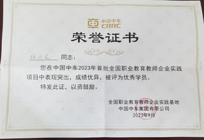 2023年7月-9月,开云机械与电气工程学院任小文、支铁山两位老师,参加由中车培训发展中心组织的教育部“火车头计划”——中国中车全国职业教育教师企业实践项目。