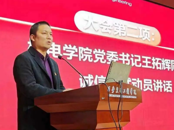 召开诚信考试动员会。12月21日上午,该院召开诚信考试动员会,会上,党委书记王拓辉发表重要讲话,希望同学们树立道德新风,在考试中自觉遵守考场纪律,端正考试态度,以诚信、正直的态度迎接考试;副院长任小文着重强调诚信考试的重要性和必要性,鼓励学生以诚信的态度面对每一次考验,用实际行动践行诚信考试的理念,做到“考到实际,验到根本”,为成为更高质量的人才打下坚实基础。学生代表崔家栋宣读诚信考试倡议书,他表示诚信考试不仅是一种道德要求,更是一种责任担当,身为学生要时刻牢记学生行为规范,秉持诚信原则,共同创造公平公正的考试环境,为打造诚信校园贡献力量。