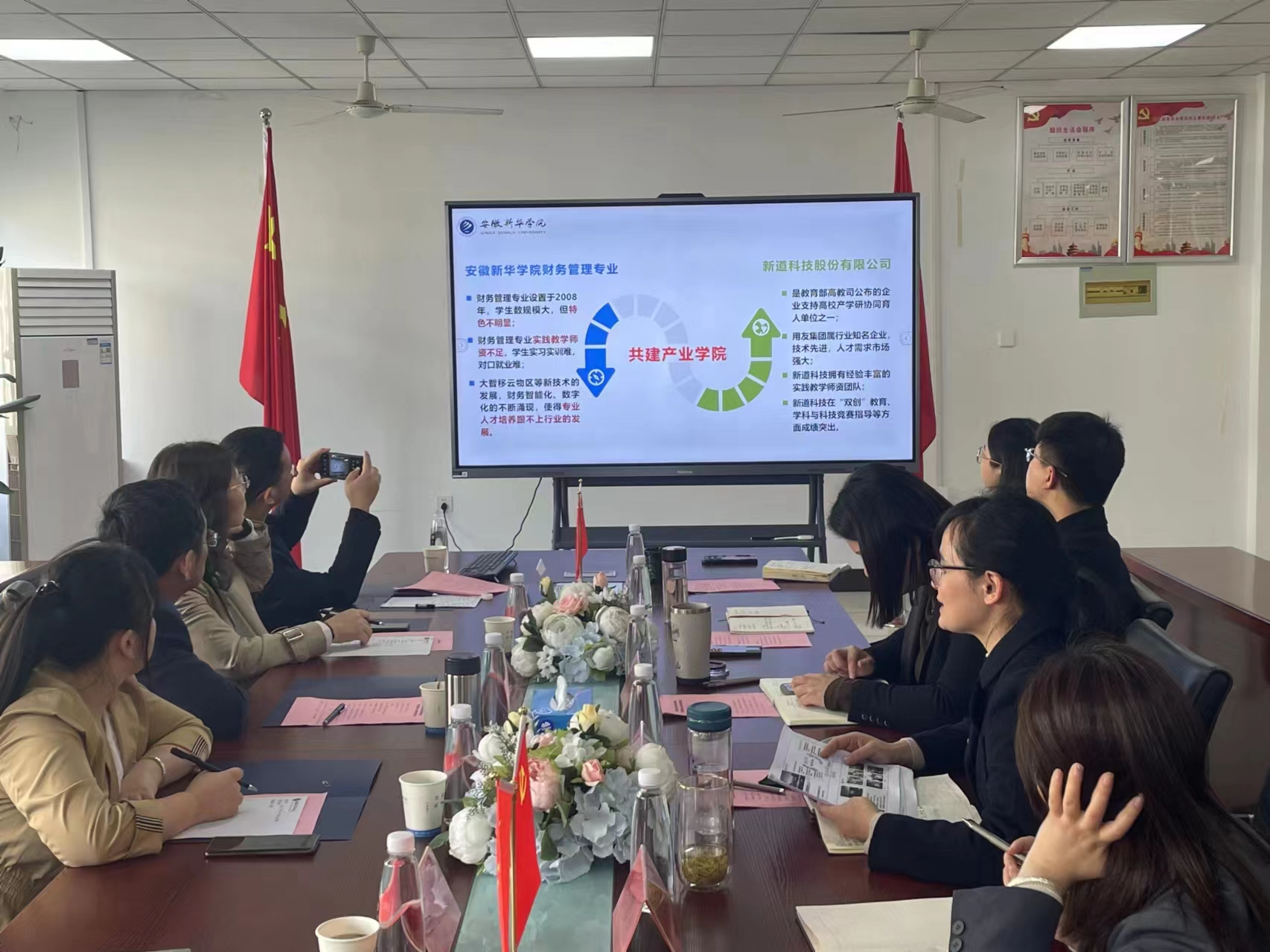 3月22、23日,人文与管理学院院长赵德利、副院长白云、数智商科产业学院院长刘晓丽、财务管理基础课教研室主任李海翔一行,赴安徽新华学院和新道安徽分公司交流产业学院建设。