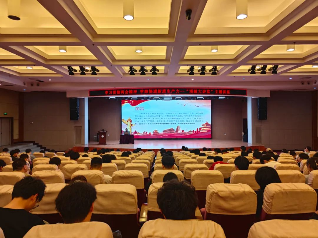 讲座上,李禾俊教授深入剖析习近平总书记在全国两会期间的重要讲话和全国两会精神,深入阐释“新质生产力”的内涵要义、主要特征和发展趋势,结合科技创新与人才培养,就两会热词“新质生产力”的基本内涵、主要特征和重大意义,学生应该如何就新概念进行思考,学校如何“日新”精神引领下助推新质生产力加快发展等方面进行解读,鼓励学生踔厉奋发、勇毅前行,为强国建设、民族复兴作出新的贡献。