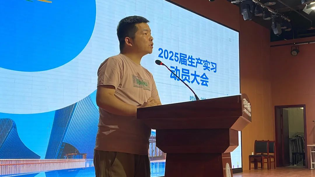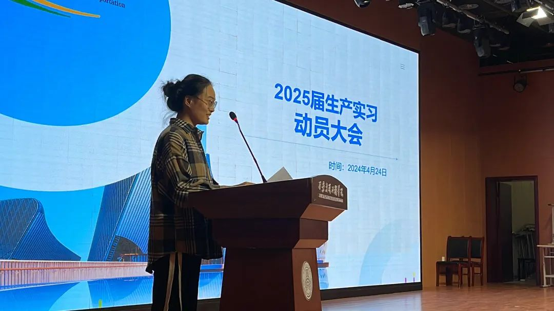 学生代表张璨发言,呼吁全体学生以饱满的精神状态迎接此次实习。