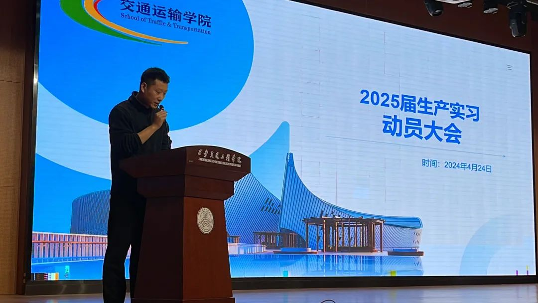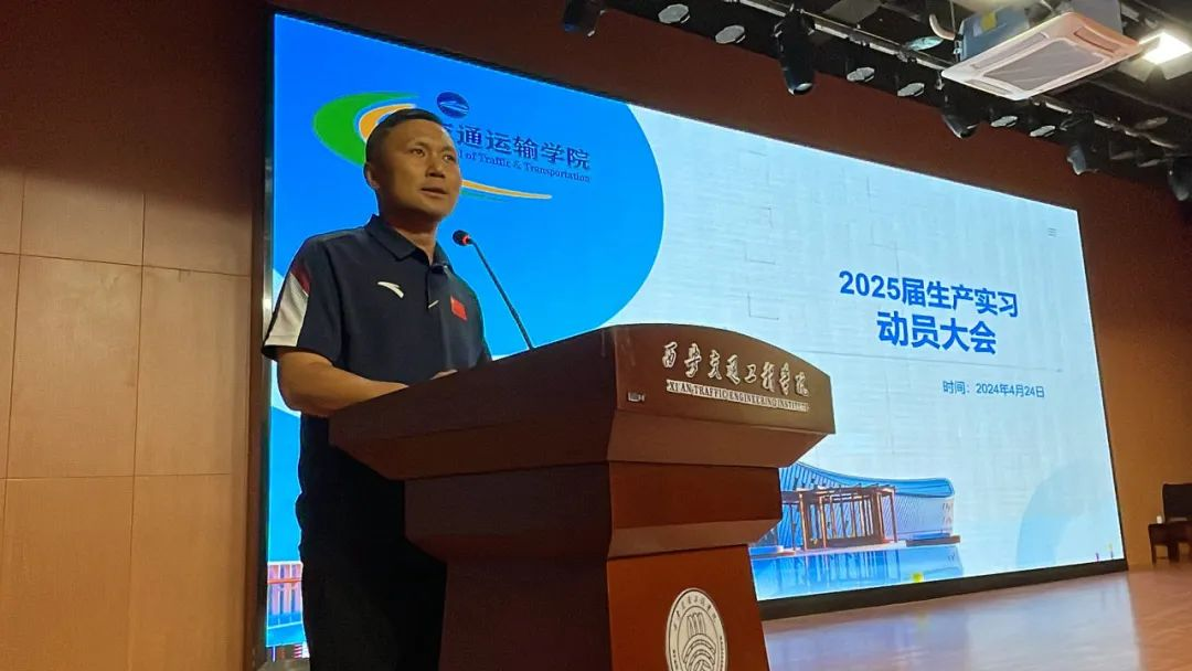 为了确保交通运输专业2024届毕业生生产实习工作的顺利进行,引导同学们对生产实习有一个正确的认识和态度,保质保量的完成此次教学任务。4月24日,交通运输学院在学术报告厅召开生产实习动员大会。陕西城际铁路有限公司工程师吴宏,学校教务处副处长齐军营、交通运输学院院长崔炳谋、交通运输学院党委书记胡省利、交通运输学院副院长王亚欧、各位生产实习带队教师及交通运输学院2021级本科和2023级专升本588名学生参加会议,会议由交通运输学院张欢老师主持。