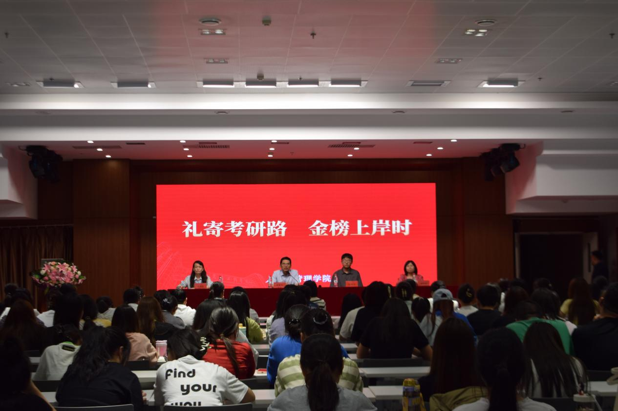 会上,与会领导为考研学子发放了学习用品。党委书记兼副院长李沙沙分析了学院近年的考研情况及就业形势,明确考研是学生提升自身综合素质、增强就业竞争力的重要途径。赵院长分别从社会大环境、学校小环境、学生个人职业发展深度阐述为什么要考研;郝院长向学生提出三点建议:制定与自身实际相符的考研计划;做好前期准备工作;磨炼坚强意志,脚踏实地备考。