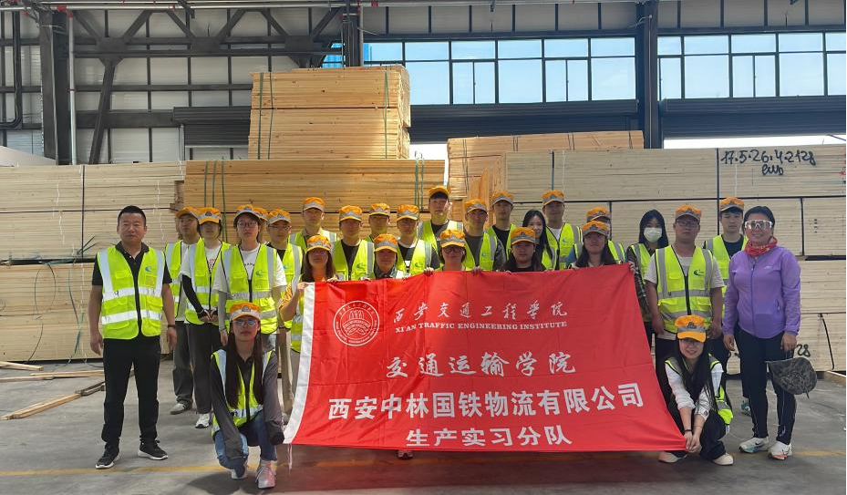 交通运输学院副院长王亚欧与在西安中林国铁物流有限公司实习的学生合影