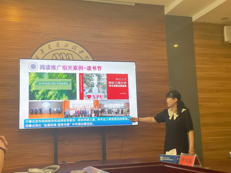 为了提升图书馆馆员们的业务素质与工作技能,不断提高馆员的业务理论水平,开拓视野,提高认知,为我馆今后的发展奠定坚实地理论基础和业务技能。2024年5月24日上午,图书馆特邀陕西省图书馆学会第八届、第九届学术研究委员会委员、CALIS示范馆先进个人、中国图书馆学会先进个人、陕西省高校图书馆先进个人、陕西省社科信息学会突出贡献奖获得者、陕西省高校图书馆榜样馆员、西安工程大学副馆长尹方屏研究馆员为全体馆员作了题为:“阅读推广与协同育人”的专题培训。