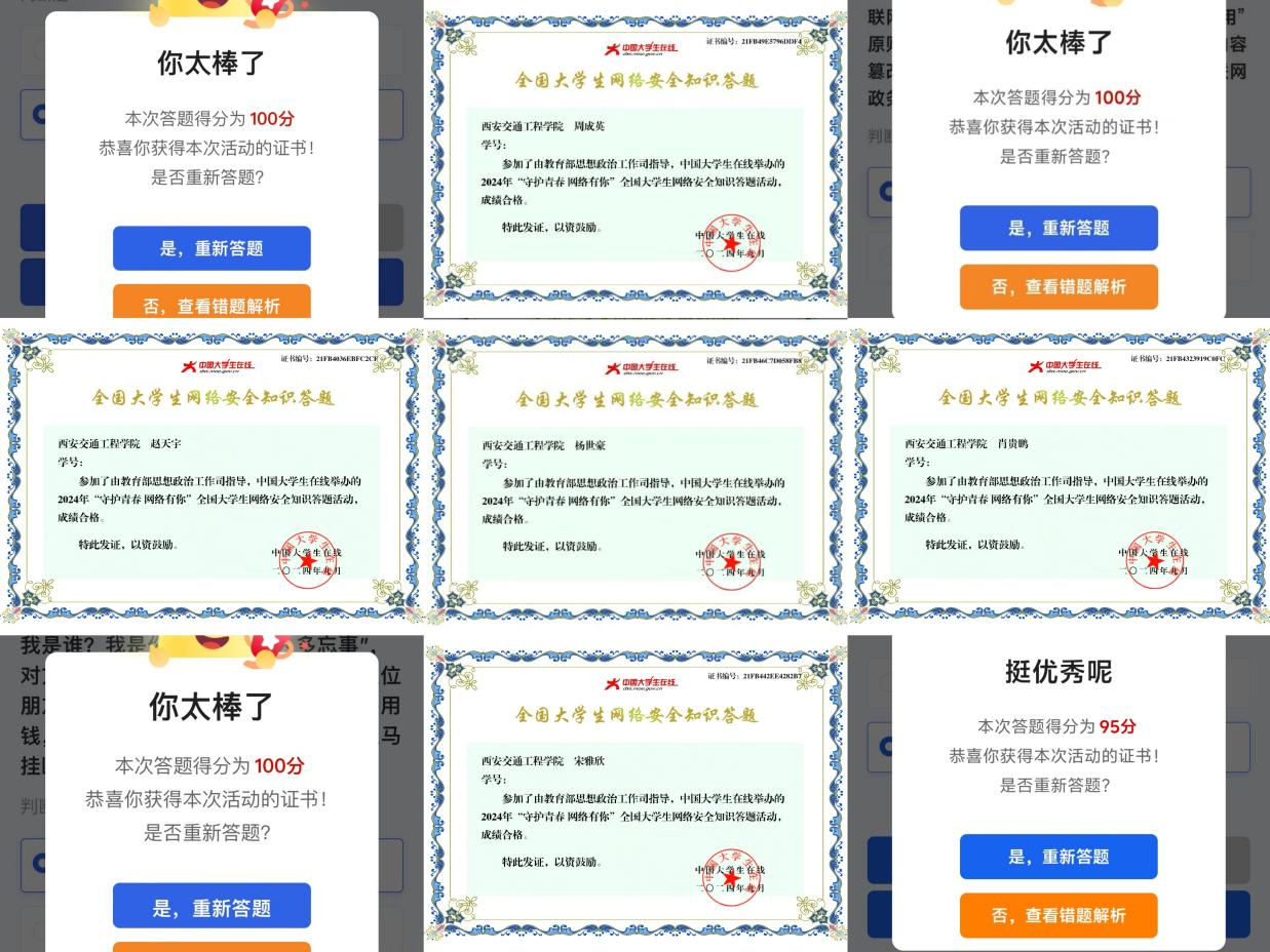 为深入开展网络安全知识技能普及,提高广大学生网络安全意识和防护技能,营造文明和谐、健康清朗的网络环境,9月9日-9月11日,现代技术学院开展网络安全知识竞赛活动。答题过程中,同学们认真思考,仔细答题,将自己代入到问题所设计的场景中,切身体会在“大数据”时代下网络诈骗的可怕之处,以及网络安全的重要性。从不同方面,多角度地展示同学们对网络安全重要性的领悟和体验,学会理智的对待各种网络诱惑,明白沉迷于网络的危害。通过此次在线答题活动,不仅加强了学生的网络安全意识,也提升了学生们的防范意识和自我保护技能,构筑出了网络安全的第一道防线,让现代技术学院学子深刻的感受到了网络信息安全的重要性。
