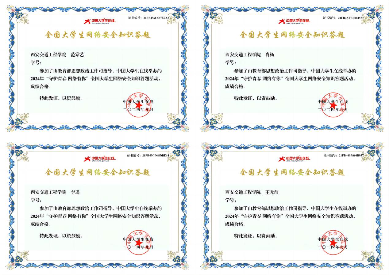 土木与铁道工程学院利用晚自习时间组织班级学生积极参与由教育部思想政治工作司指导,中国大学生在线举办的“守护青春 ,网络有你”全国大学生网络安全知识答题活动。同学们在进行网络安全知识答题的过程中,可以学习防范网络诈骗、安全使用网络等知识。同学们通过认真答题,学会如何识别网络陷阱,正确使用网络以及树立正确的网络安全观念。
